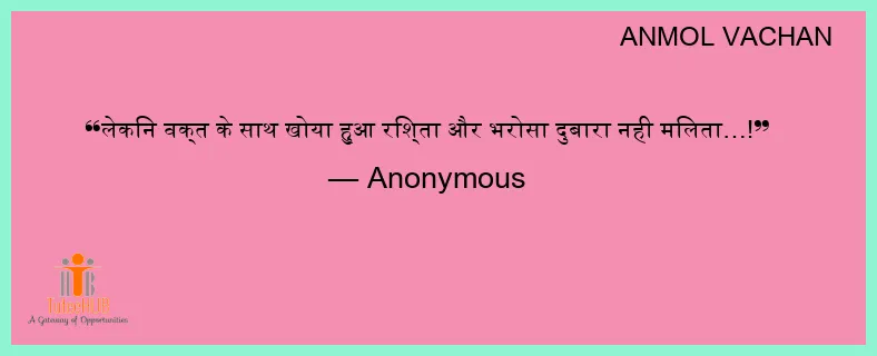 लेकिन वक्त के साथ खोया हुआ रिश्ता और भरोसा दुबारा नही मिलता…!