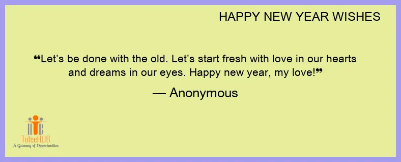 Let’s be done with the old. Let’s start fresh with love in our hearts and dreams in our eyes. Happy new year, my love!