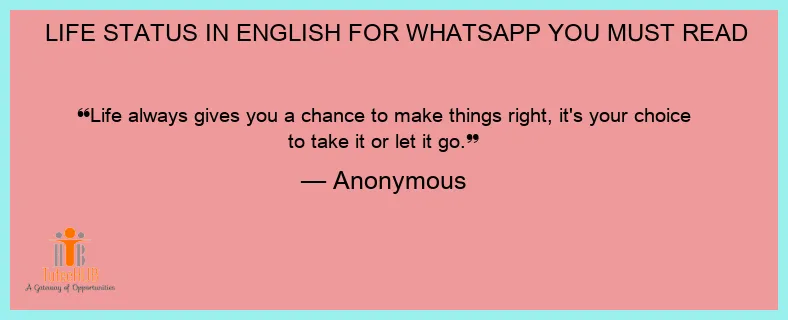Life always gives you a chance to make things right, it's your choice to take it or let it go.