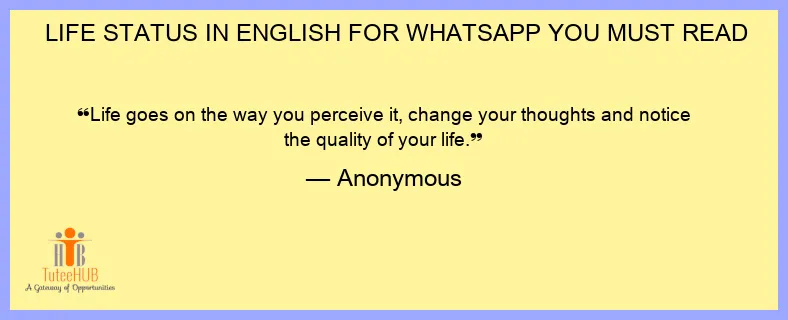 Life goes on the way you perceive it, change your thoughts and notice the quality of your life.
