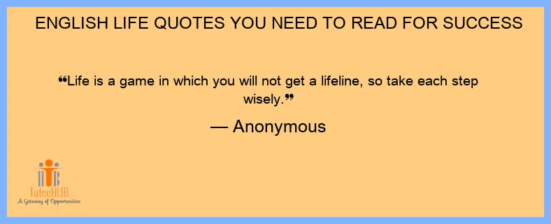 Life is a game in which you will not get a lifeline, so take each step wisely.