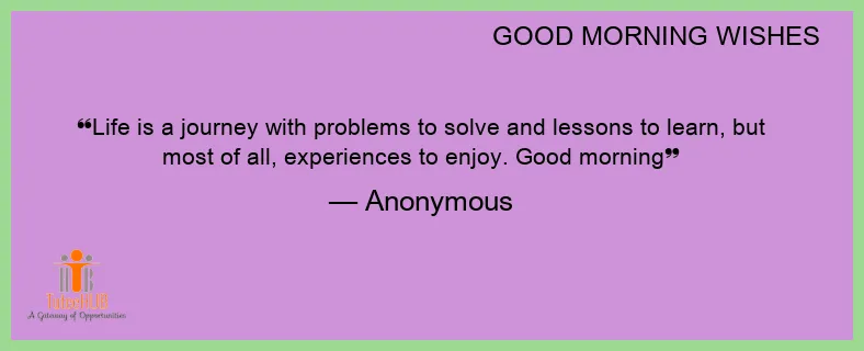 Life is a journey with problems to solve and lessons to learn, but most of all, experiences to enjoy. Good morning