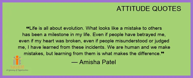 Life is all about EVOLUTION. What looks like a mistake to others has been a MILESTONE in my life. Even if people have betrayed me, even if my HEART was broken, even if people misunderstood or judged me, I have learned from these incidents. We are human and we make MISTAKES, but learning from them is what MAKES the difference.