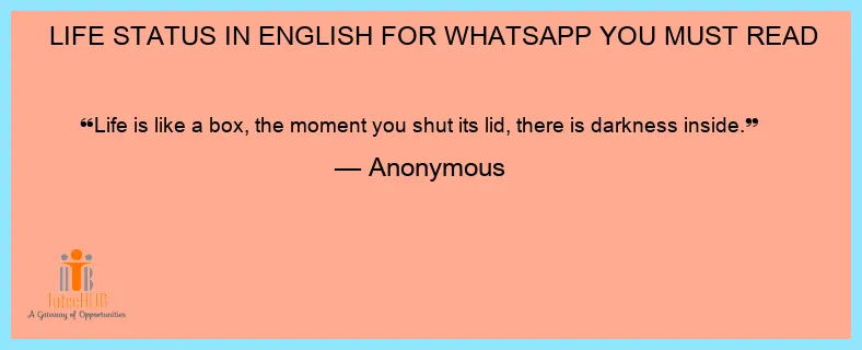Life is like a box, the moment you shut its lid, there is darkness inside.