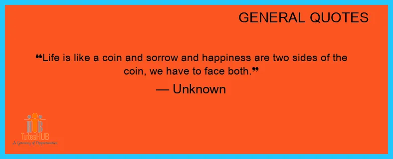 LIFE is like a coin and sorrow and HAPPINESS are TWO SIDES of the coin, we have to face both.