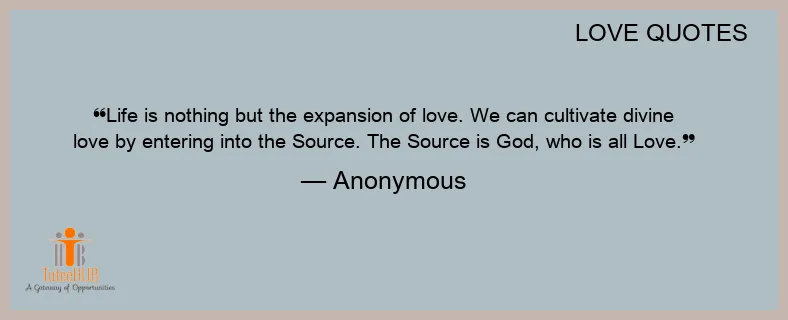 Life is nothing but the expansion of love. We can cultivate divine love by entering into the Source. The Source is God, who is all Love.