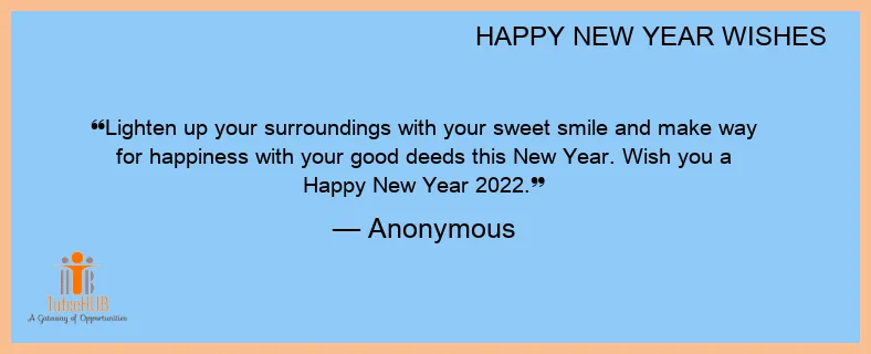 Lighten up your surroundings with your sweet smile and make way for happiness with your good deeds this New Year. Wish you a Happy New Year 2022.