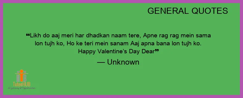 Likh do aaj meri har dhadkan NAAM tere, Apne rag rag mein sama lon tujh ko, Ho ke teri mein SANAM Aaj apna bana lon tujh ko. HAPPY VALENTINE’s Day Dear