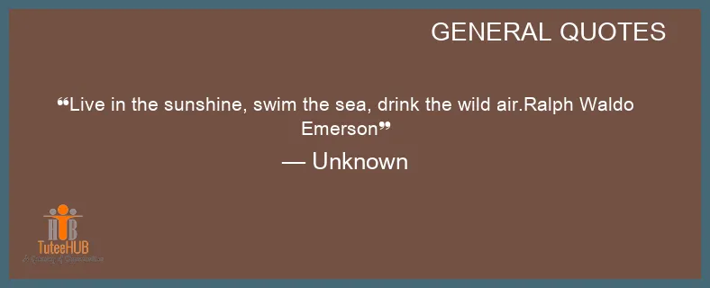 LIVE in the SUNSHINE, swim the sea, DRINK the WILD air.Ralph Waldo Emerson