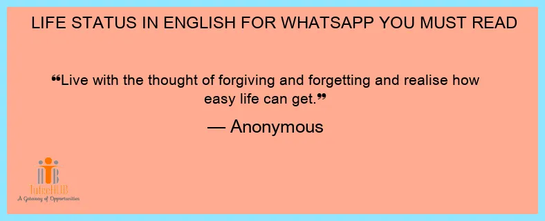 Live with the thought of forgiving and forgetting and realise how easy life can get.