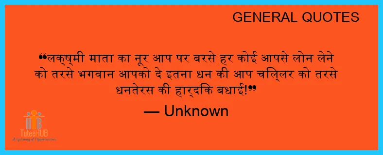 लक्ष्मी माता का नूर आप पर बरसे हर कोई आपसे लोन लेने को तरसे भगवान आपको दे इतना धन की आप चिल्लर को तरसे धनतेरस की हार्दिक बधाई!