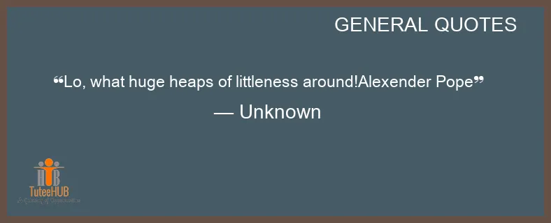 LO, what HUGE heaps of littleness AROUND!ALEXENDER POPE