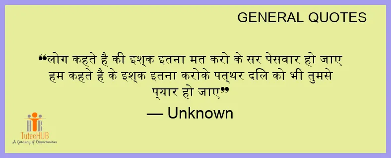 लोग कहते है की इश्क इतना मत करो के सर पेसवार हो जाए हम कहते है के इश्क इतना करोके पत्थर दिल को भी तुमसे प्यार हो जाए