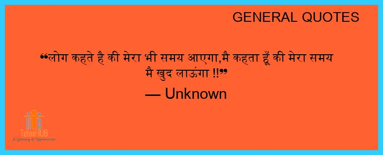 लोग कहते है की मेरा भी समय आएगा,मै कहता हूँ की मेरा समय मै खुद लाऊंगा !!