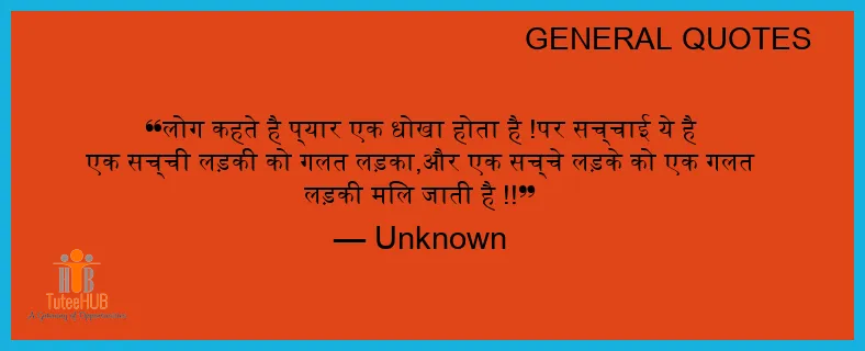 लोग कहते है प्यार एक धोखा होता है !पर सच्चाई ये है एक सच्ची लड़की को गलत लड़का,और एक सच्चे लड़के को एक गलत लड़की मिल जाती है !!