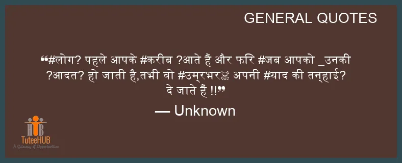 #लोग? पहले आपके #करीब ?आते हैं और फिर #जब आपको _उनकी ?आदत? हो जाती है,तभी वो #उम्रभर☠ अपनी #याद की तन्हाई? दे जाते हैं !!