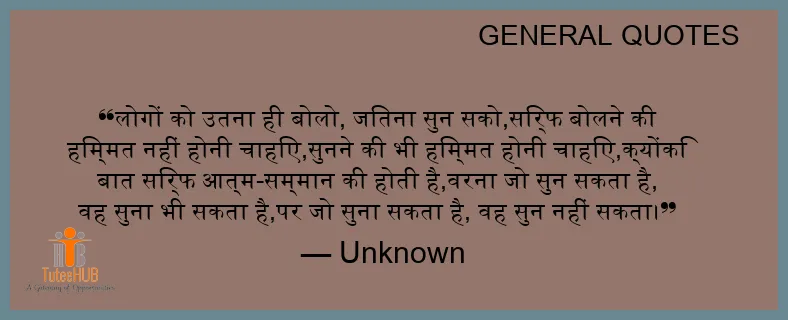 लोगों को उतना ही बोलो, जितना सुन सको,सिर्फ बोलने की हिम्मत नहीं होनी चाहिए,सुनने की भी हिम्मत होनी चाहिए,क्योंकि बात सिर्फ आत्म-सम्मान की होती है,वरना जो सुन सकता है, वह सुना भी सकता है,पर जो सुना सकता है, वह सुन नहीं सकता।