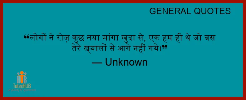 लोगों ने रोज़ कुछ नया मांगा खुदा से, एक हम ही थे जो बस तेरे ख्यालों से आगे नहीं गये।