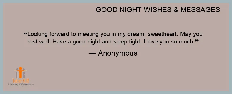 Looking forward to meeting you in my dream, sweetheart. May you rest well. Have a good night and sleep tight. I love you so much.