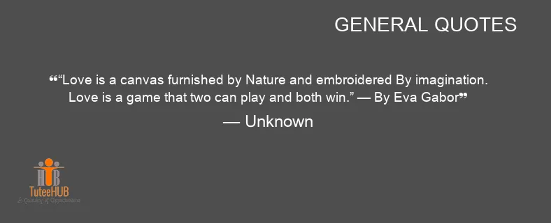 “Love is a CANVAS furnished by Nature and embroidered By imagination. Love is a GAME that two can PLAY and both win.” — By Eva Gabor