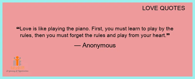 Love is like playing the piano. First, you must learn to play by the rules, then you must forget the rules and play from your heart.