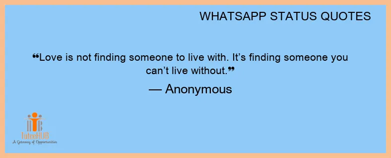 Love is not finding someone to live with. It’s finding someone you can’t live without.