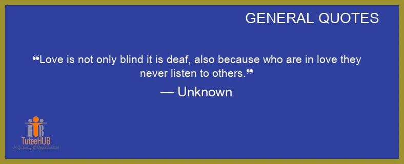 Love is not only BLIND it is DEAF, ALSO because who are in love they NEVER listen to OTHERS.