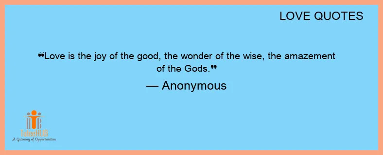 Love is the joy of the good, the wonder of the wise, the amazement of the Gods.