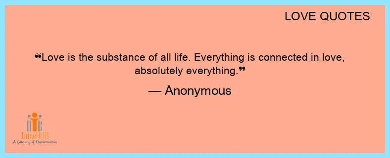 Love is the substance of all life. Everything is connected in love, absolutely everything.