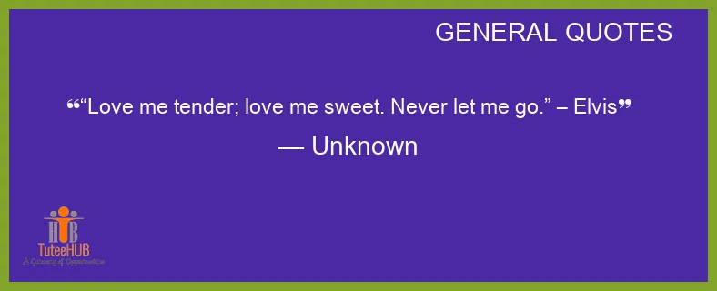 “Love me TENDER; love me sweet. NEVER let me go.” – ELVIS