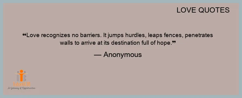 Love recognizes no barriers. It jumps hurdles, leaps fences, penetrates walls to arrive at its destination full of hope.