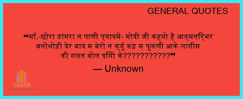 माँ.-छोरा डांगरा न पाणी प्यादमें- मोदी जी कहयो है आत्मनिर्भर बनोथोड़ी देर बाद म बेरो न क्यूँ कड़ म फुकणी आके लागीम की गलत बोल दियो के???????????