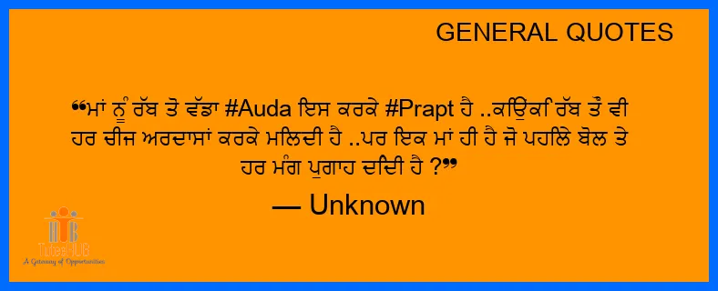 ਮਾਂ ਨੂੰ ਰੱਬ ਤੋਂ ਵੱਡਾ #Auda ਇਸ ਕਰਕੇ #Prapt ਹੈ ..ਕਿਉਂਕਿ ਰੱਬ ਤੌਂ ਵੀ ਹਰ ਚੀਜ ਅਰਦਾਸਾਂ ਕਰਕੇ ਮਿਲਦੀ ਹੈ ..ਪਰ ਇਕ ਮਾਂ ਹੀ ਹੈ ਜੋ ਪਹਿਲੇ ਬੋਲ ਤੇ ਹਰ ਮੰਗ ਪੁਗਾਹ ਦਿੰਦੀ ਹੈ ?