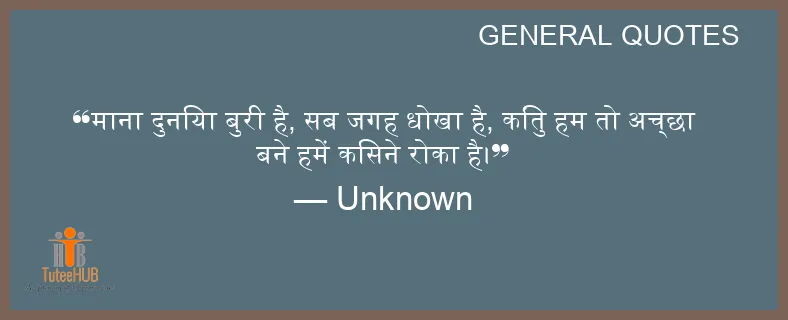 माना दुनिया बुरी है, सब जगह धोखा है, किंतु हम तो अच्छा बने हमें किसने रोका है।