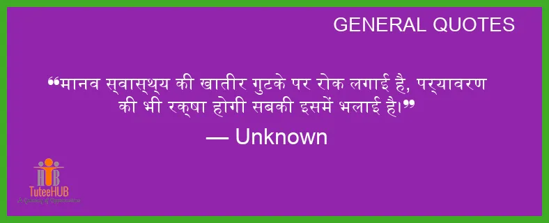 मानव स्वास्थ्य की खातीर गुटके पर रोक लगाई है, पर्यावरण की भी रक्षा होगी सबकी इसमें भलाई है।