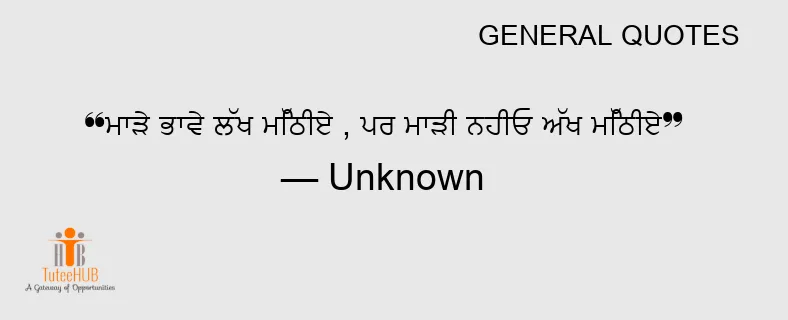 ਮਾੜੇ ਭਾਵੇ ਲੱਖ ਮਿੱਠੀਏ , ਪਰ ਮਾੜੀ ਨਹੀਓ ਅੱਖ ਮਿੱਠੀਏ