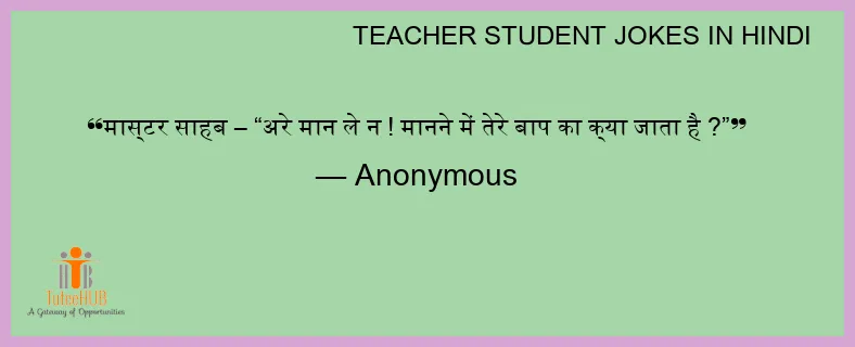 मास्टर साहब – “अरे मान ले न ! मानने में तेरे बाप का क्या जाता है ?”