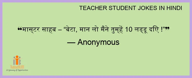 मास्टर साहब – “बेटा, मान लो मैंने तुम्हें 10 लड्डू दिए !”