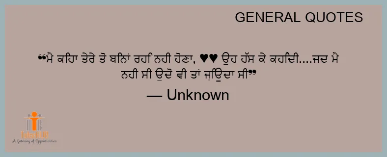 ਮੈ ਕਿਹਾ ਤੇਰੇ ਤੋਂ ਬਿਨਾਂ ਰਹਿ ਨਹੀ ਹੋਣਾ, ♥♥ ਉਹ ਹੱਸ ਕੇ ਕਹਿੰਦੀ....ਜਦ ਮੈ ਨਹੀ ਸੀ ਉਦੋਂ ਵੀ ਤਾਂ ਜ਼ਿਊਦਾ ਸੀ