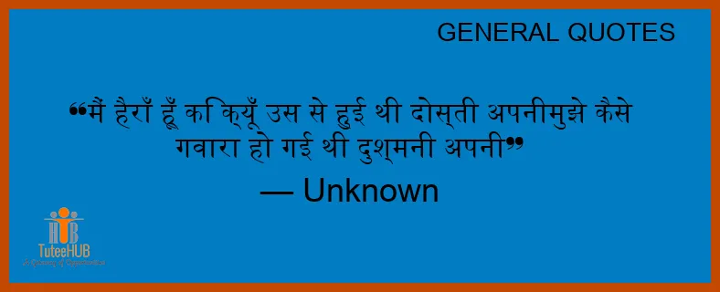 मैं हैराँ हूँ कि क्यूँ उस से हुई थी दोस्ती अपनीमुझे कैसे गवारा हो गई थी दुश्मनी अपनी
