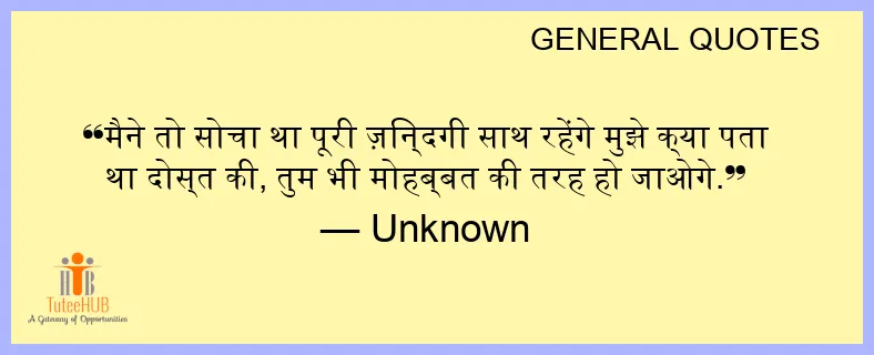 मैने तो सोचा था पूरी ज़िन्दगी साथ रहेंगे मुझे क्या पता था दोस्त की, तुम भी मोहब्बत की तरह हो जाओगे.