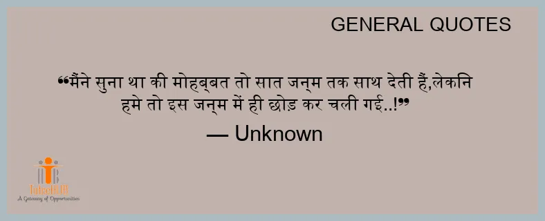 मैंने सुना था की मोहब्बत तो सात जन्म तक साथ देती हैं,लेकिन हमे तो इस जन्म में ही छोड़ कर चली गई..!