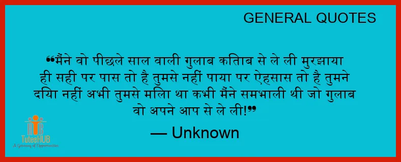 मैंने वो पीछले साल वाली गुलाब किताब से ले ली मुरझाया ही सही पर पास तो है तुमसे नहीं पाया पर ऐहसास तो है तुमने दिया नहीं अभी तुमसे मिला था कभी मैंने समभाली थी जो गुलाब वो अपने आप से ले ली!