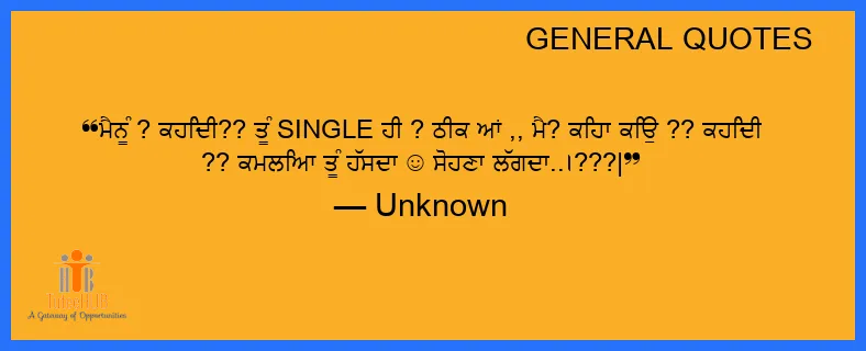 ਮੈਨੂੰ ? ਕਹਿੰਦੀ?? ਤੂੰ SINGLE ਹੀ ? ਠੀਕ ਆਂ ,, ਮੈ? ਕਿਹਾ ਕਿਉਂ ?? ਕਹਿੰਦੀ ?? ਕਮਲਿਆ ਤੂੰ ਹੱਸਦਾ ☺ ਸੋਹਣਾ ਲੱਗਦਾ..।???|