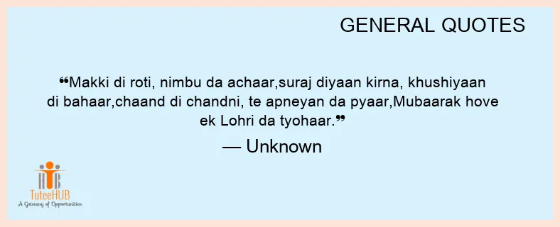 Makki di roti, nimbu DA achaar,suraj diyaan kirna, khushiyaan di bahaar,chaand di chandni, te apneyan da PYAAR,Mubaarak hove EK Lohri da tyohaar.