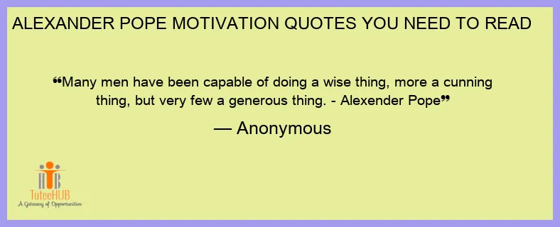Many men have been capable of doing a wise thing, more a cunning thing, but very few a generous thing. - Alexender Pope