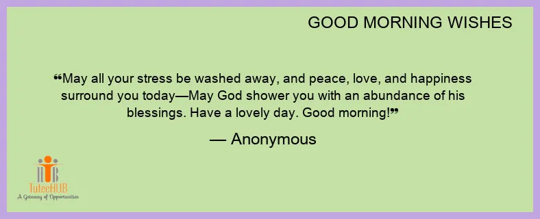 May all your stress be washed away, and peace, love, and happiness surround you today—May God shower you with an abundance of his blessings. Have a lovely day. Good morning!