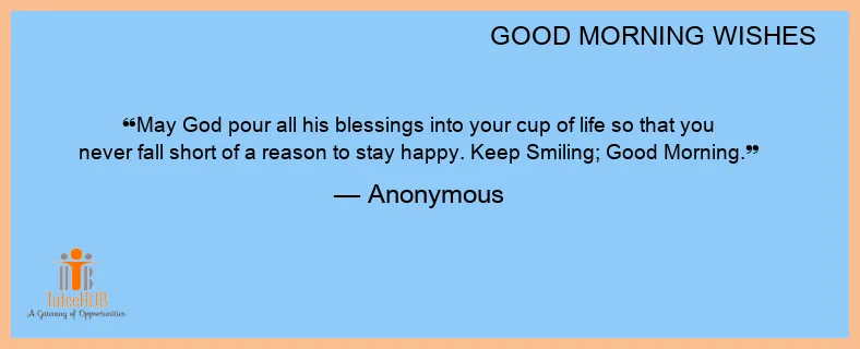 May God pour all his blessings into your cup of life so that you never fall short of a reason to stay happy. Keep Smiling; Good Morning.