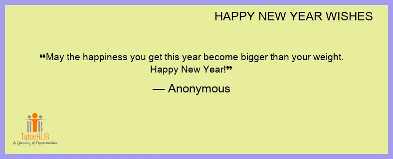 May the happiness you get this year become bigger than your weight. Happy New Year!