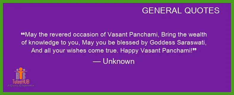 May the revered occasion of Vasant Panchami, BRING the wealth of knowledge to you, May you be BLESSED by Goddess Saraswati, And all your wishes come TRUE. HAPPY Vasant Panchami!